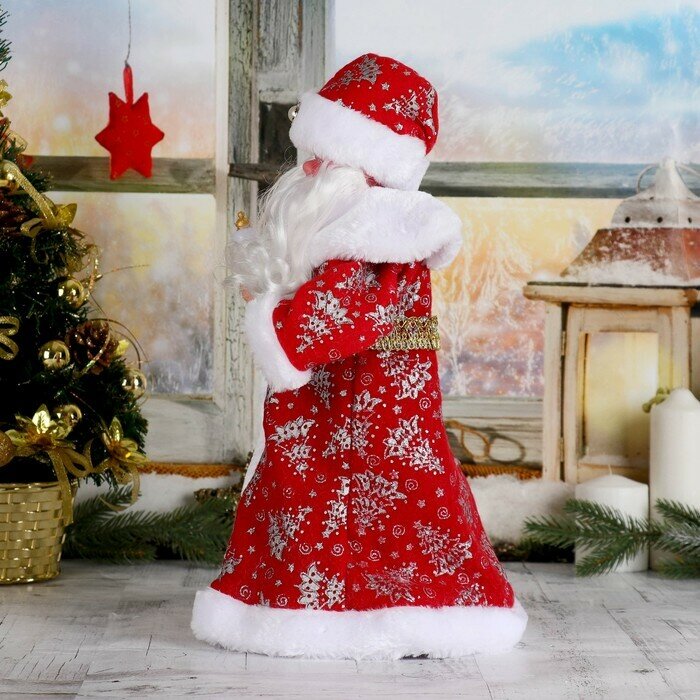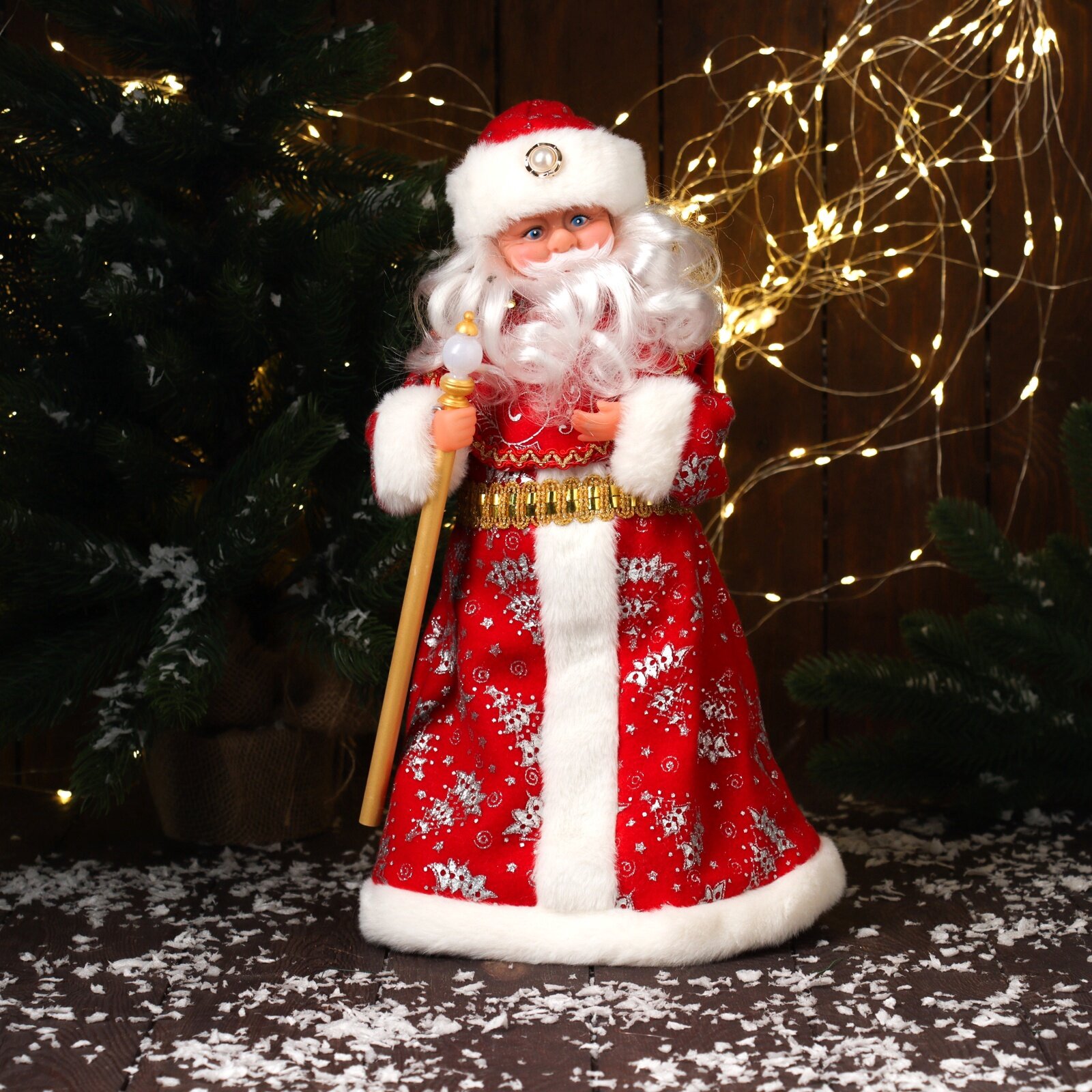 Дед Мороз под ёлку «Зимнее волшебство. Новогодняя игрушка в красной шубе, с посохом», 39 см, двигается, красный