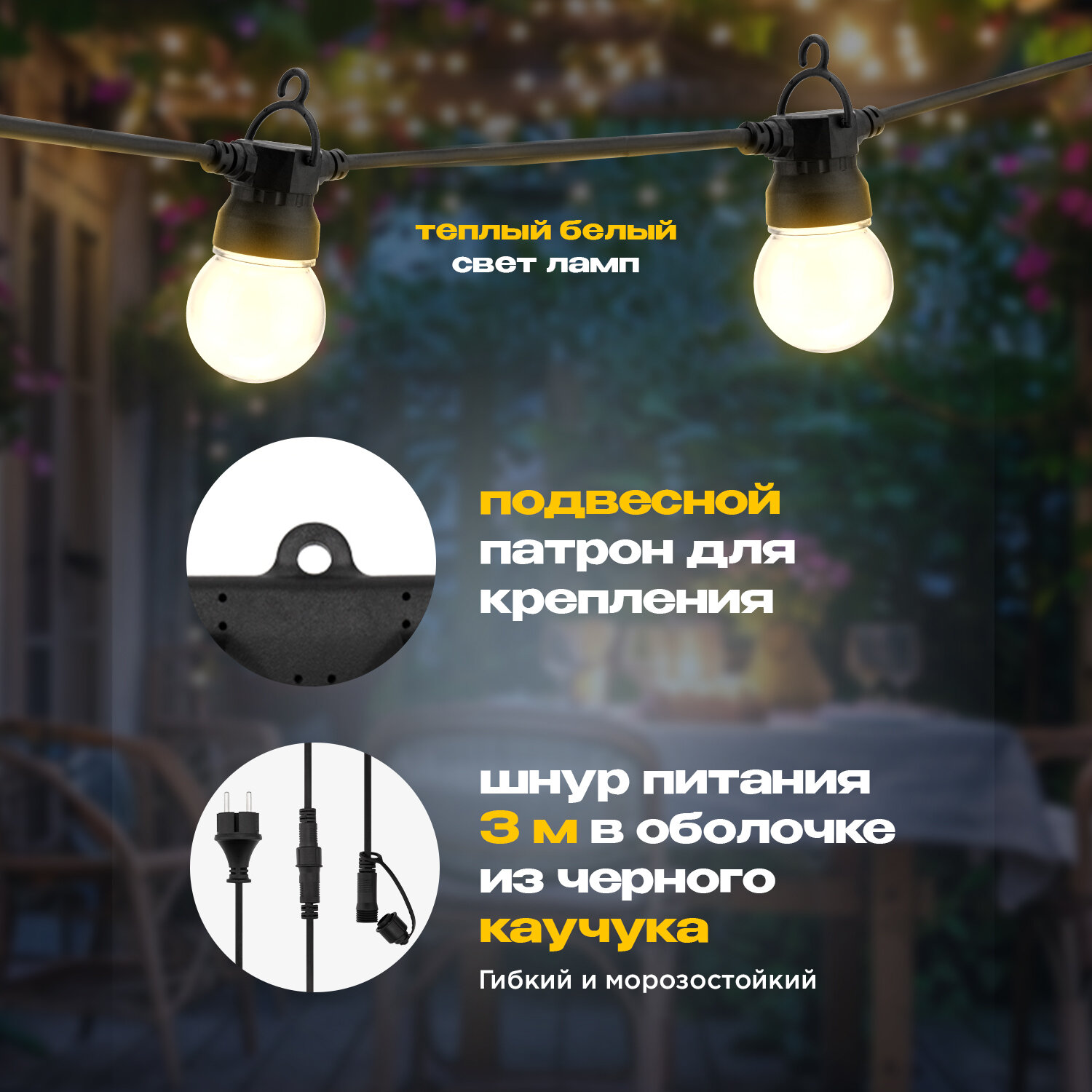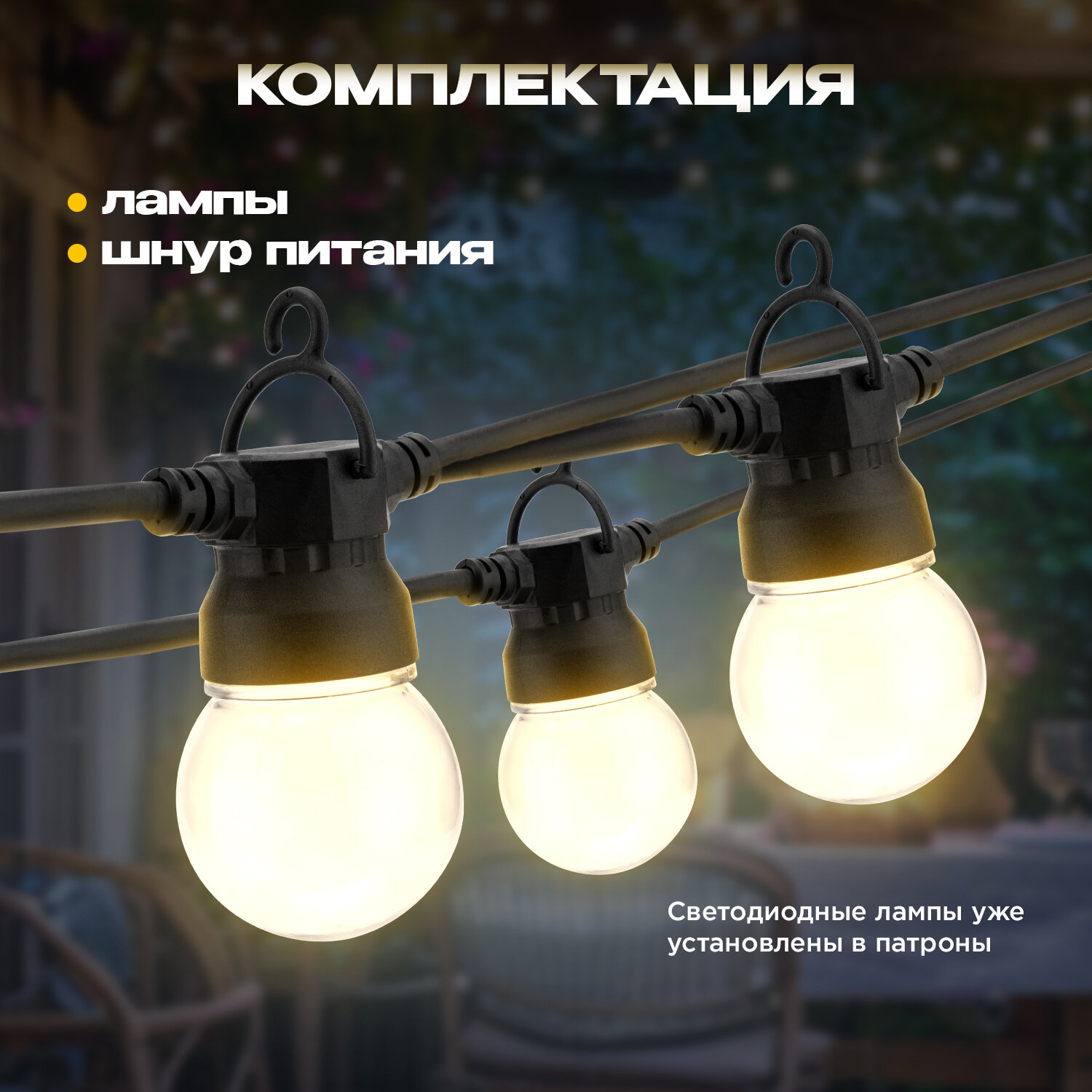 Ниже Вы можете прочитать отзывы на Уличная гирлянда Лофт Neon-Night 10м, 20 матовых ламп, влагостойкость IP65, теплый белый, ознакомится с подробными характеристиками, посмотреть интересные обзоры и фотографии на Уличная гирлянда Лофт Neon-Night 10м, 20 матовых ламп, влагостойкость IP65, теплый белый.