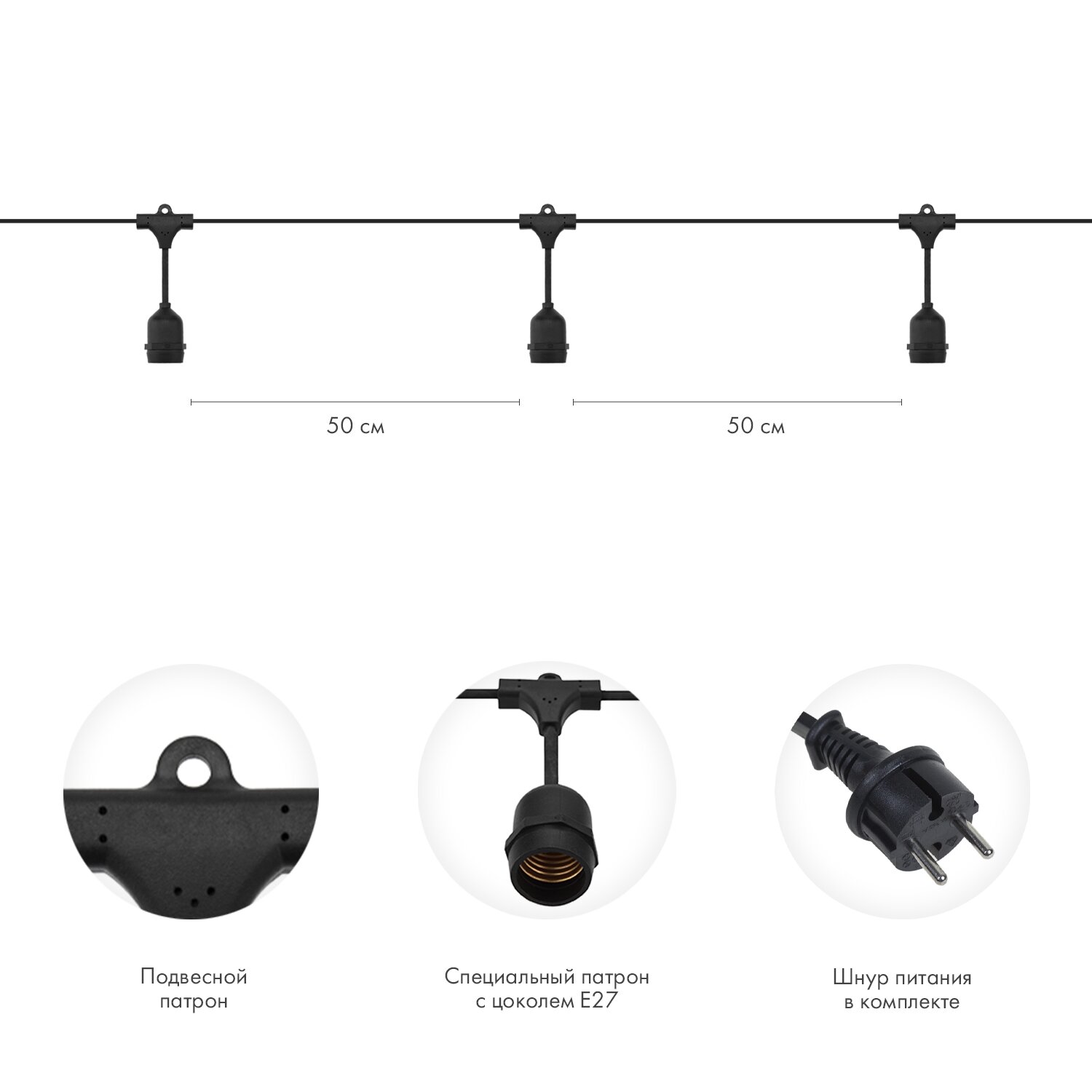 Уличная гирлянда Лофт Neon-Night 15м, 50 прозрачных ламп, влагостойкость IP44, теплый белый