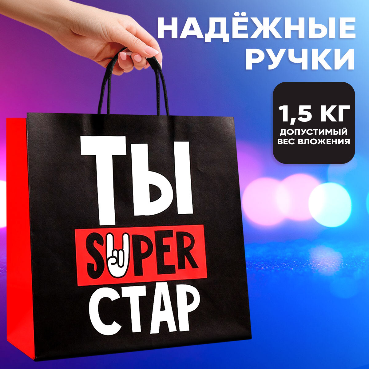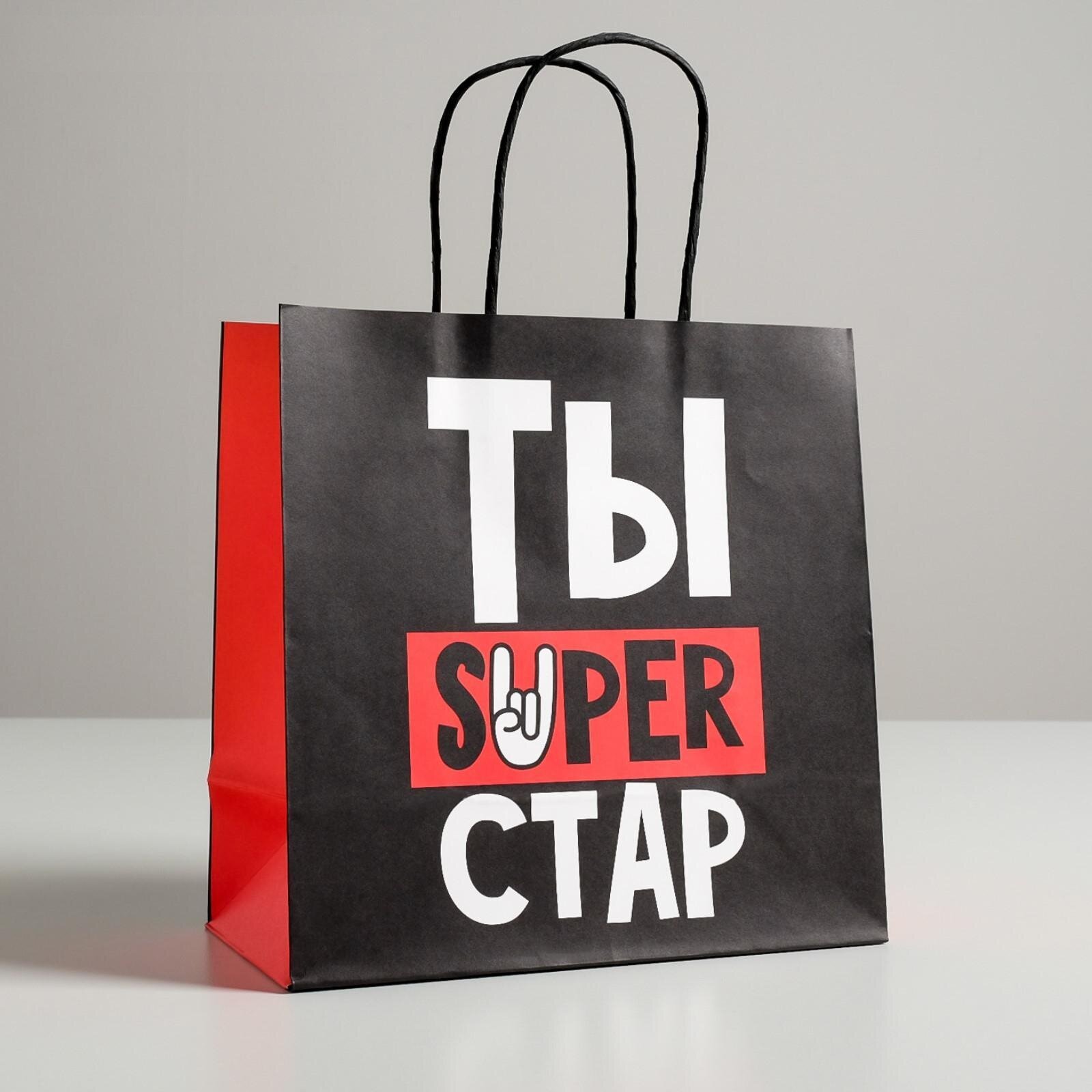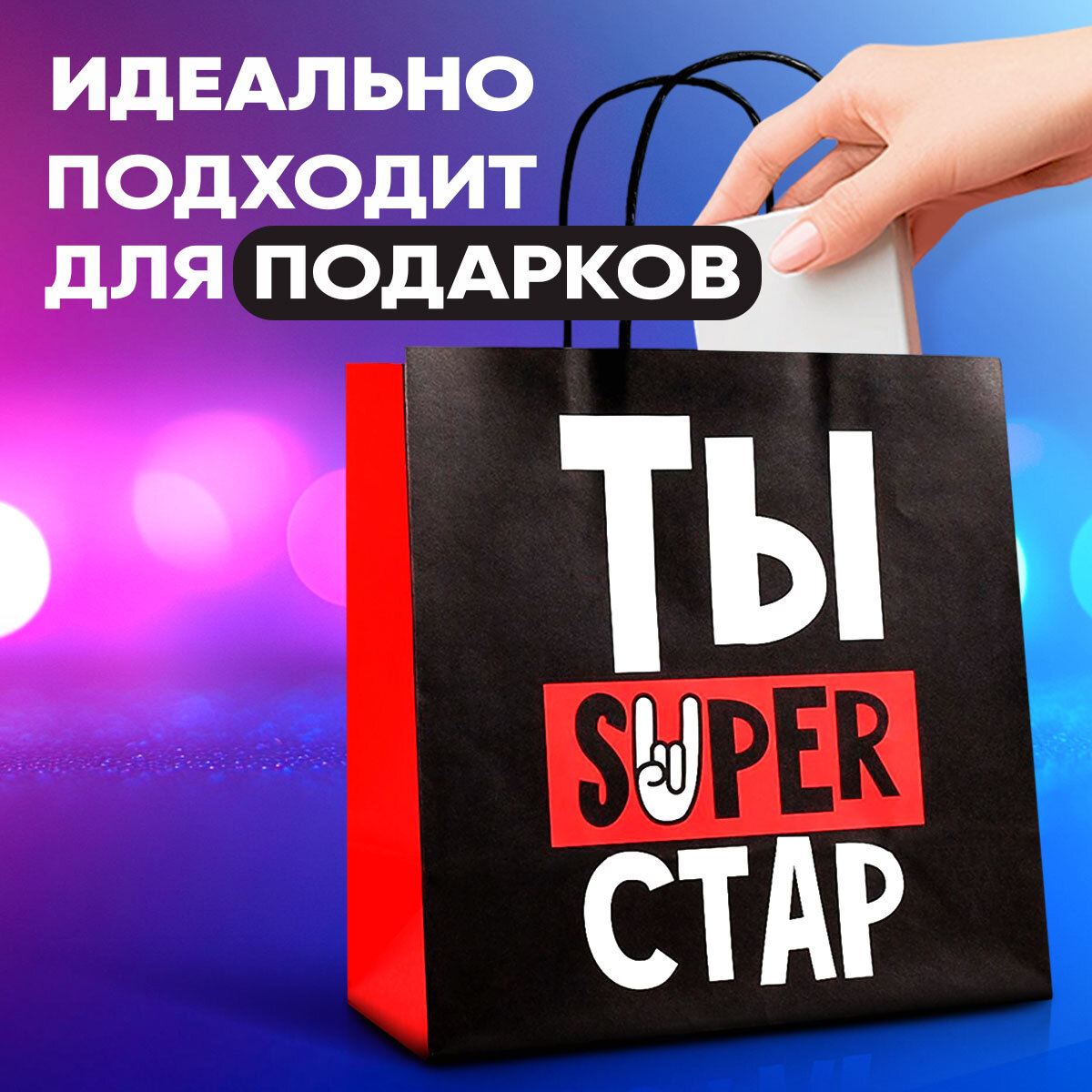 Купить Пакет подарочный с приколом «Супер стар», 22 х 22 х 11 см, для упаковки подарка