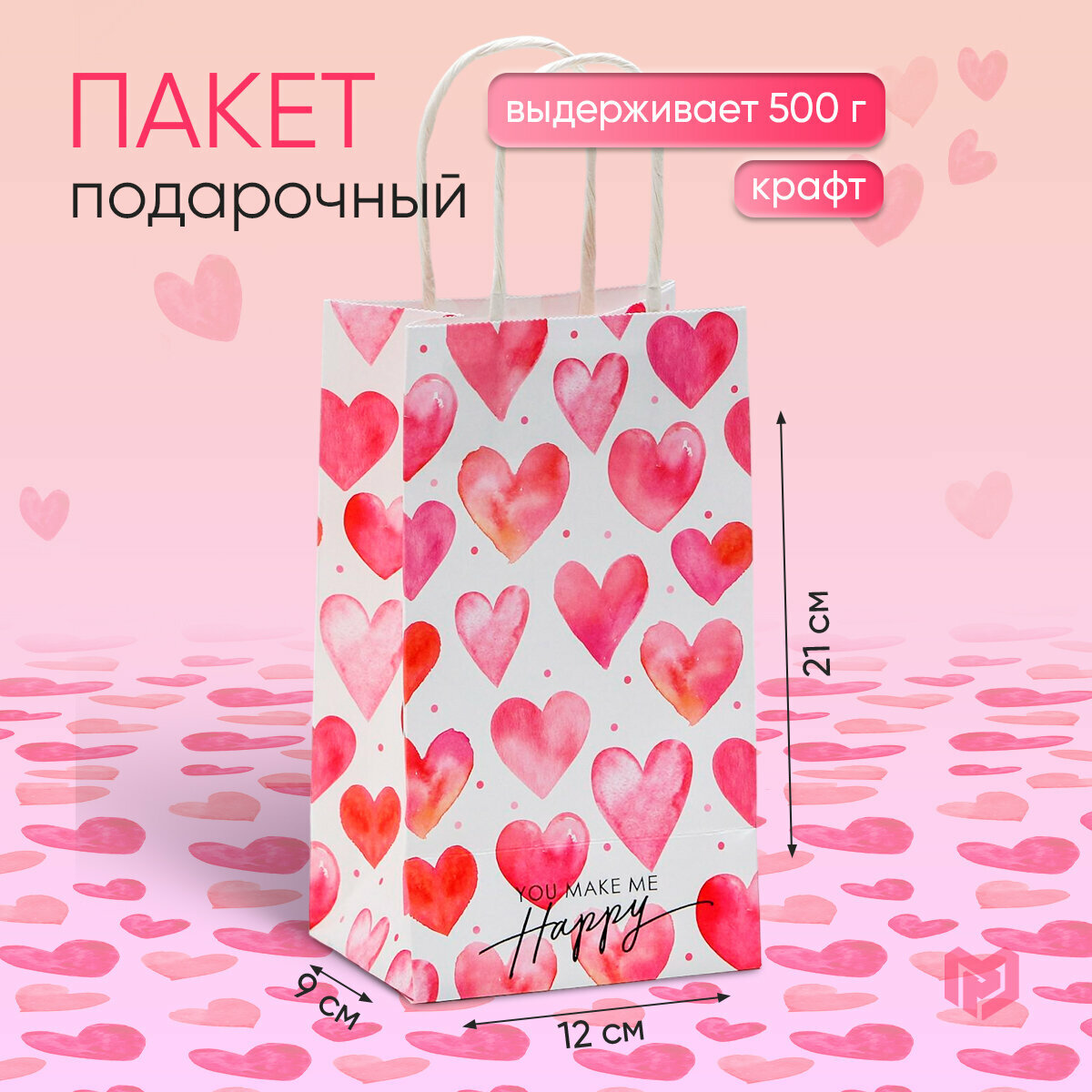 Пакет подарочный крафтовый, упаковка, «Happy», 12 х 21 х 9 см интересное: