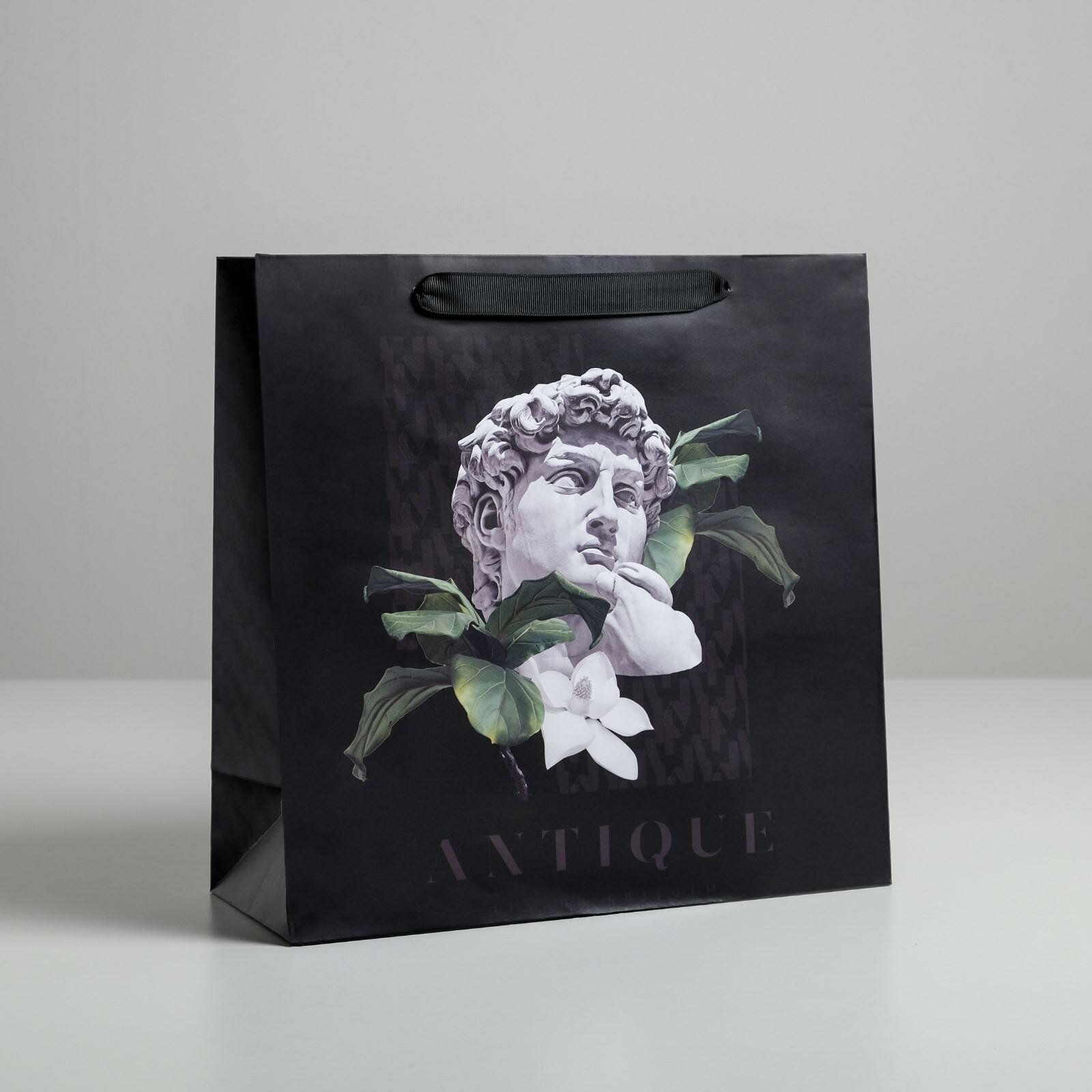 СохранитьПакет подарочный квадратный «Antique», 30 × 30 × 12 см, давид, черный, для упаковки подарков интересное: