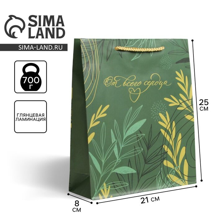 Купить Пакет подарочный "Present with love", ML 21 х 25 х 8 см, зеленый, для упаковки подарка