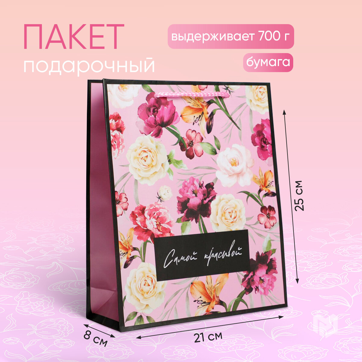 Пакет ламинированный "Самой красивой", ML 21 х 25 х 8 см