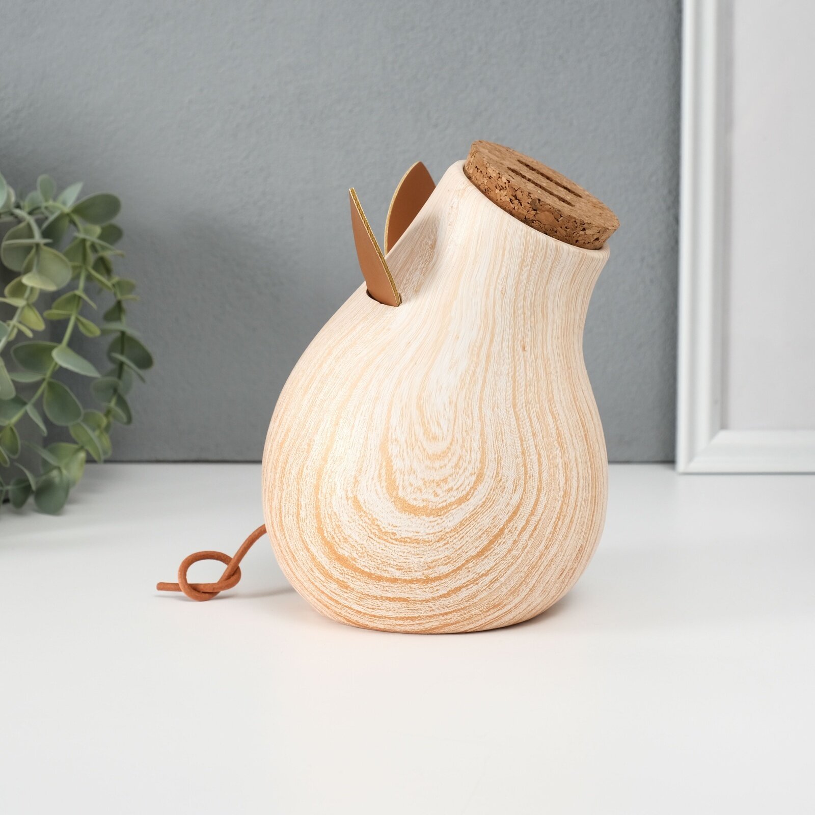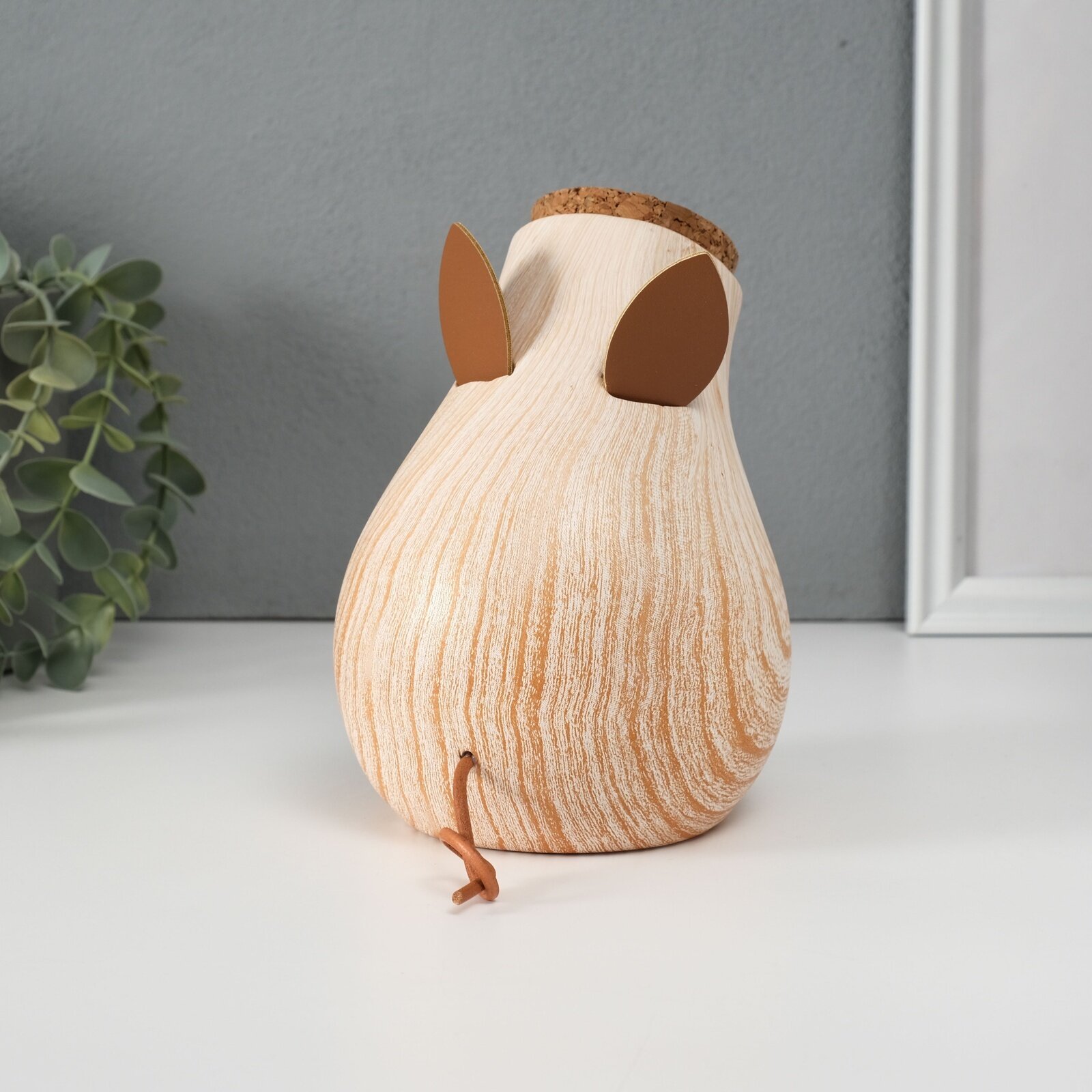 Копилка для денег "Свинья с пустым животом", керамика под дерево, 16x6.6x13.5 см