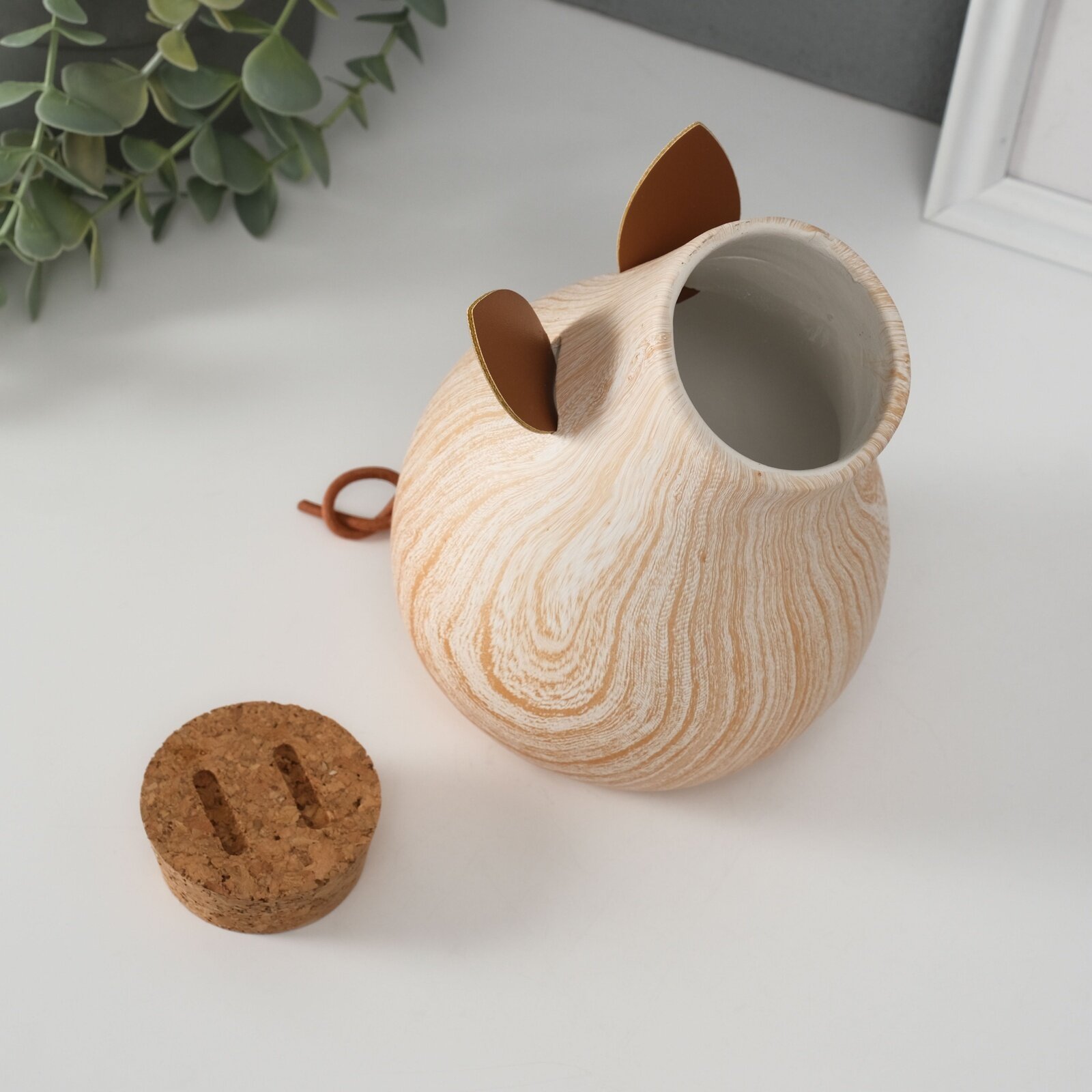 Копилка для денег "Свинья мордашка с большим пяточком", керамика под дерево, 13.3x11.7x16.3 см