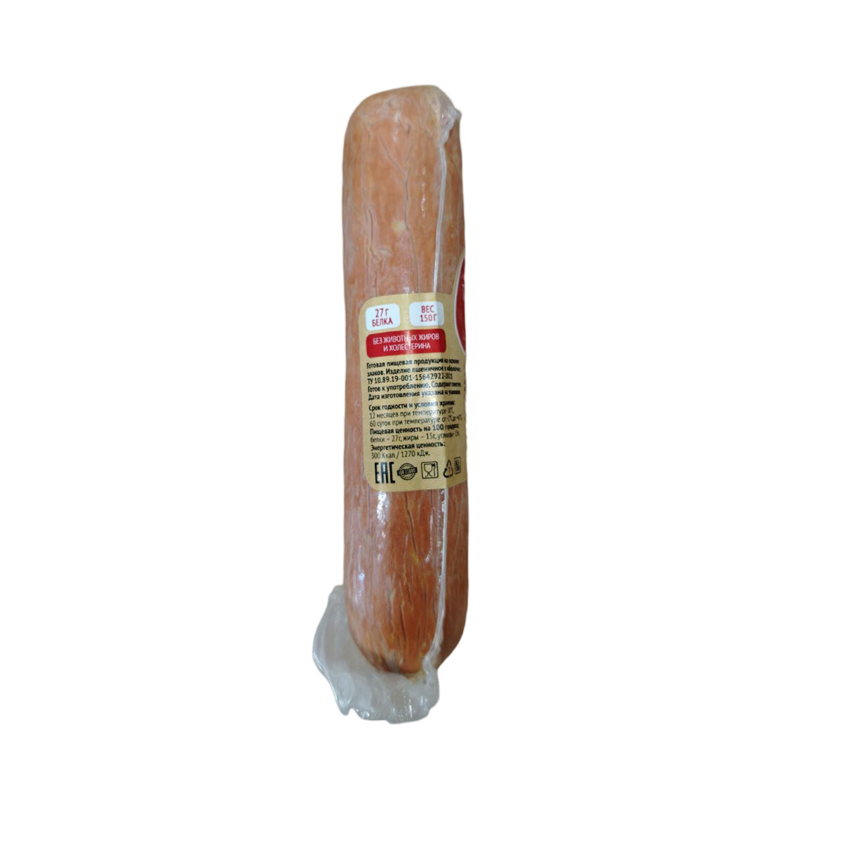 | Состав | свежеотмытый пшеничный белок, белок полбы, вода артезианская структурированная, растительные масла (подсолнечное, кокосовое, оливковое), соль поваренная пищевая, виноградный сахар, мускатный орех, кориандр, кардамон, душистый перец, черный перец, перец чили, агар-агар, аромат «Сервелат», альгинат (полисахарид из морских водорослей), краситель натуральный «Красный рис». |