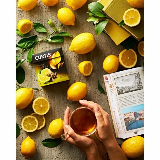 Чай черный Curtis Sunnyс ароматом лимона цедрой цитрусовых и лепестками цветов 20 пирамидок 6 упаковок