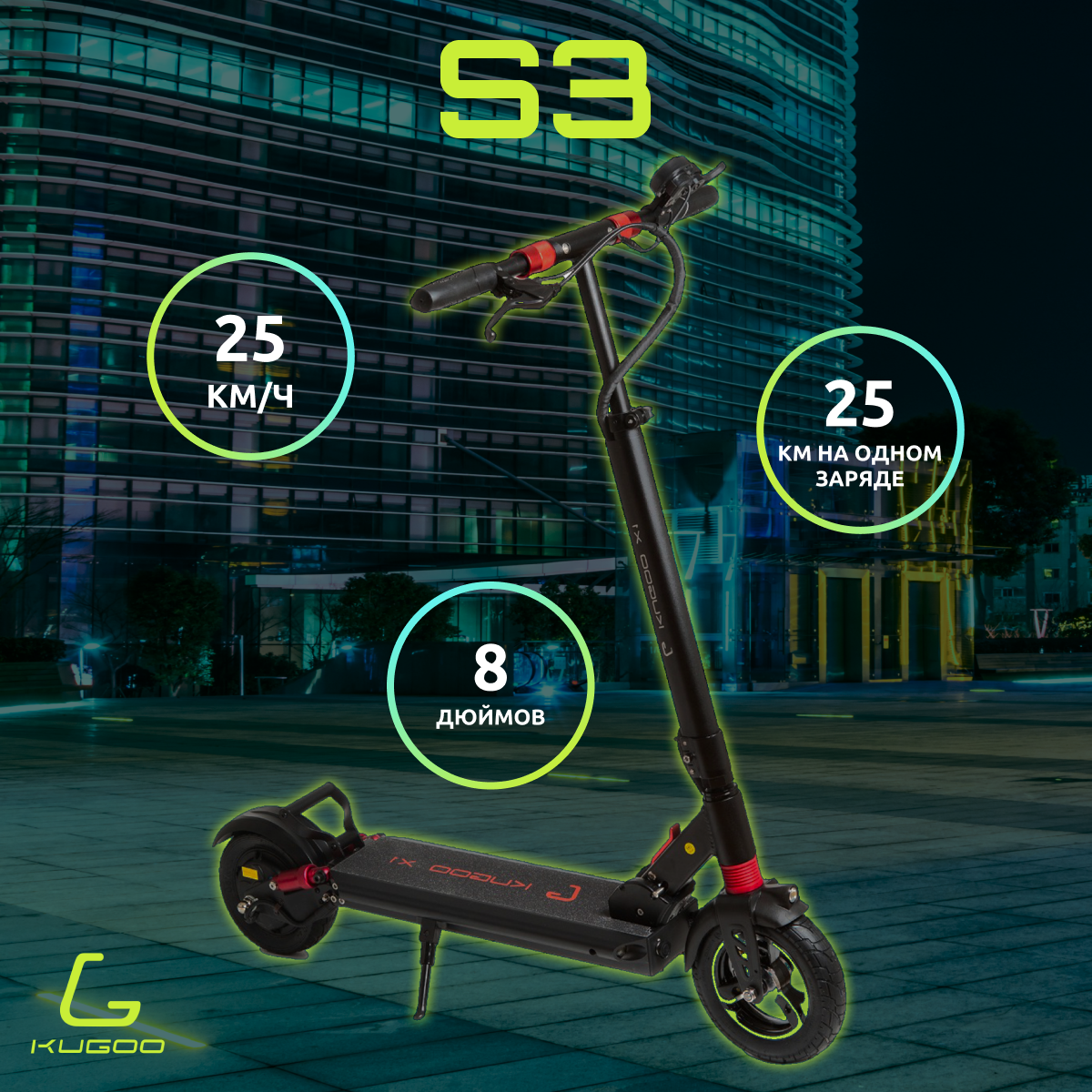 Электросамокат Kugоо S3, складной, с фонарем, 350Вт, колеса 2 шт, чёрный интересное:
