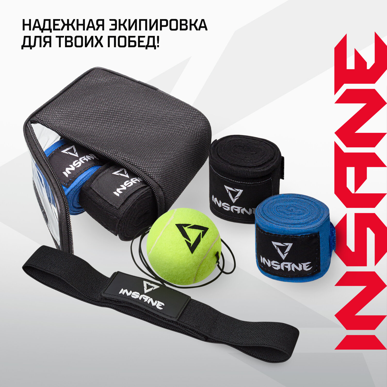 Купить Подарочный набор для бокса INSANE: бинты, мяч боевой