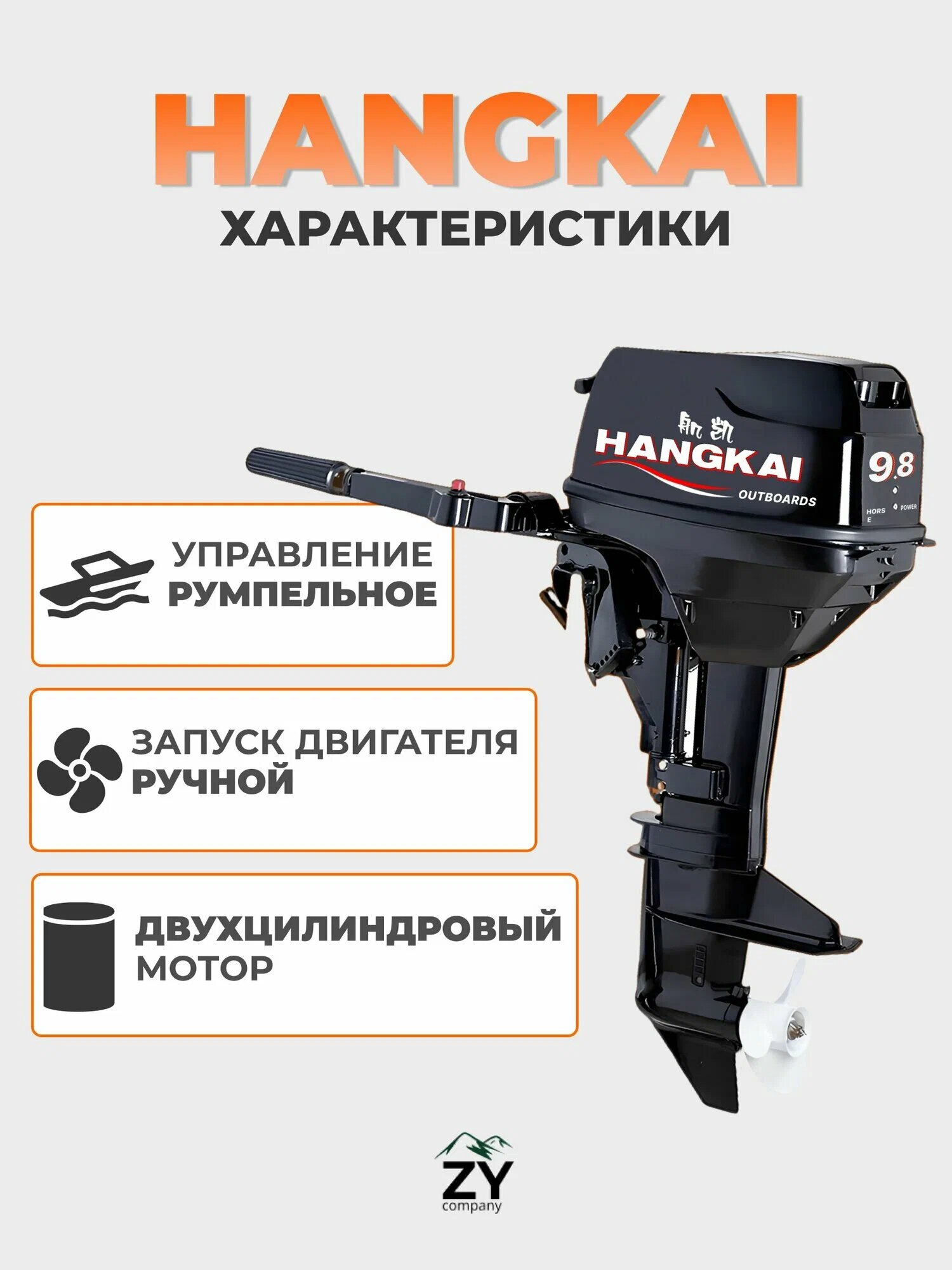 Лодочный мотор Hangkai 9.9 PLUS 20 л. с. 2-тактный, бензиновый
