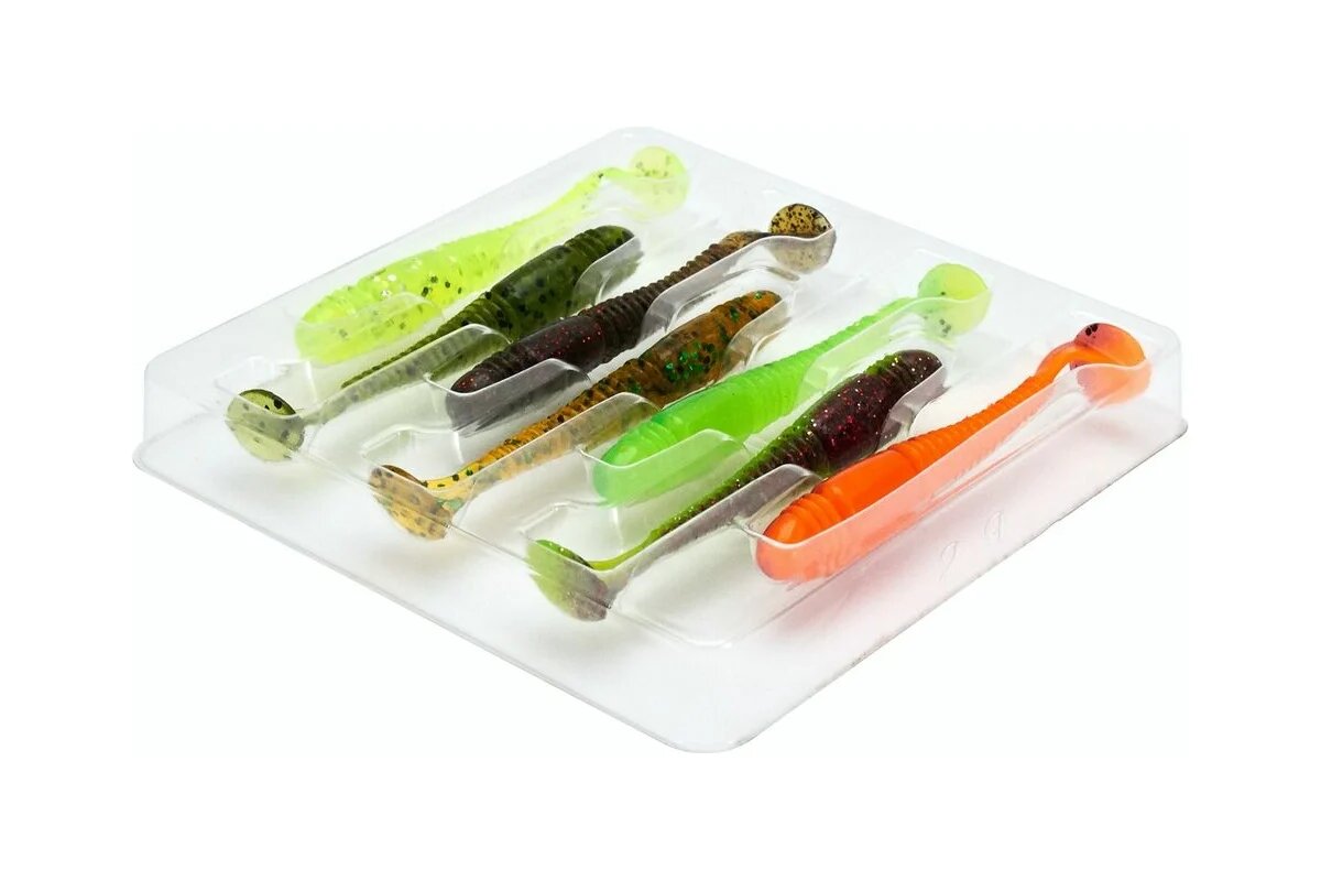 Силиконовая приманка мягкая съедобная виброхвост Lucky John Pro S Tioga 2.9" 74 мм MIX2 набор 7 шт.