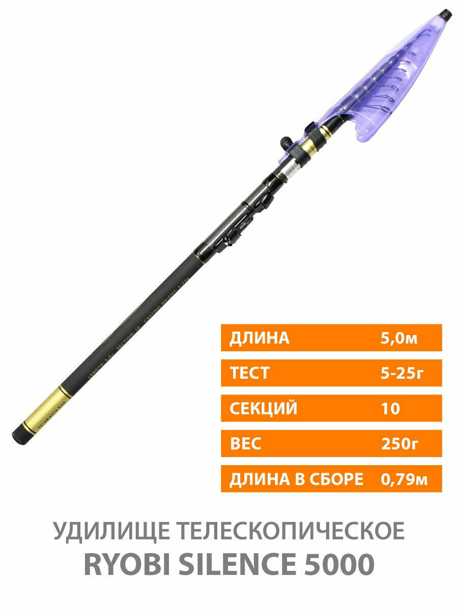 Удилище болонское телескопическое Ryobi Silence, 5 м, тест 5–25 г, 10 с, чехол интересное: