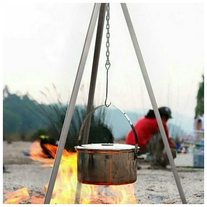Практичная костровая стальная тренога в чехле высотой 1000 мм + цепь с крюком