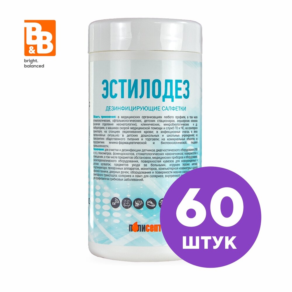 Салфетки Эстилодез 60шт, дезинфицирующие, для различных поверхностей
