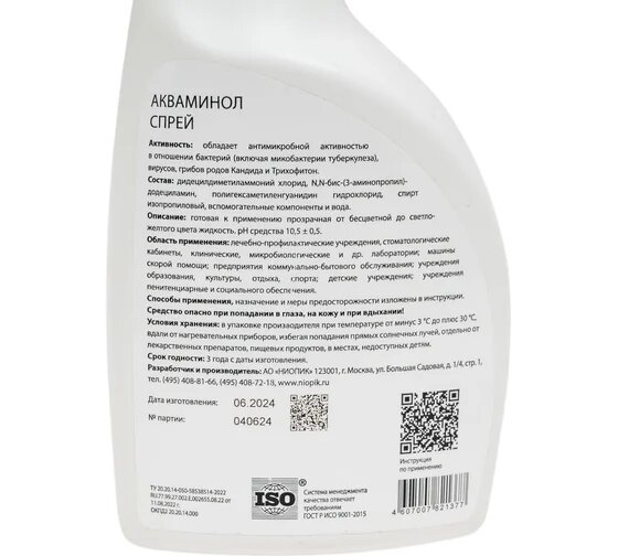Ниопик Средство дезинфицирующее Акваминол (спрей), 500 мл, тип крышки: триггер