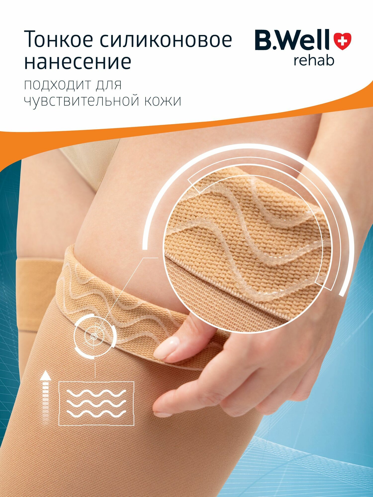 Компрессионные чулки B. Well / 2 класс компрессии/ компрессионный трикотаж JW-227/ чулки госпитальные/ размер 4, Natural