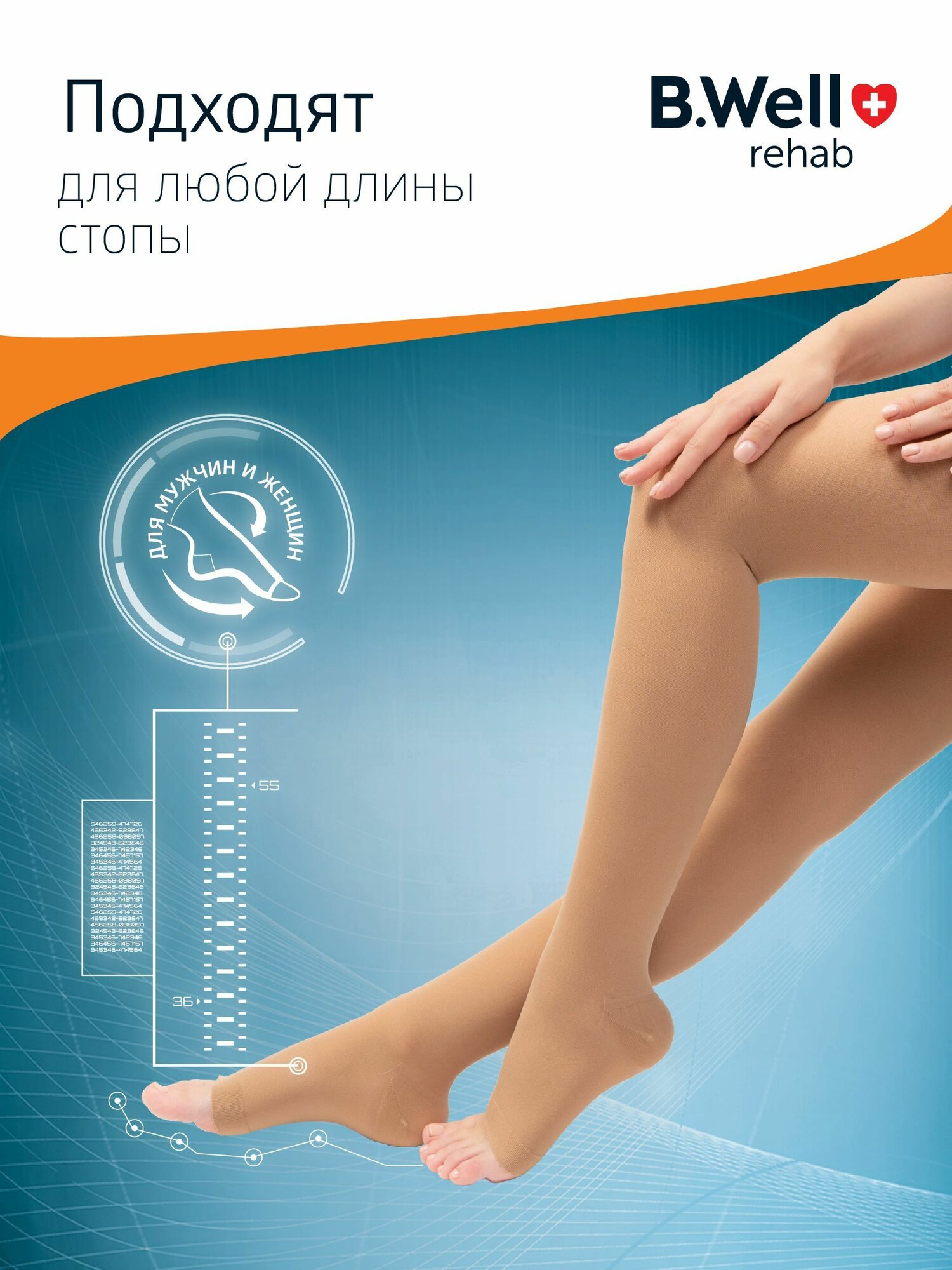 Компрессионные чулки B.Well / 2 класс компрессии/ компрессионный трикотаж JW-227/ чулки госпитальные/ размер 2, Natural