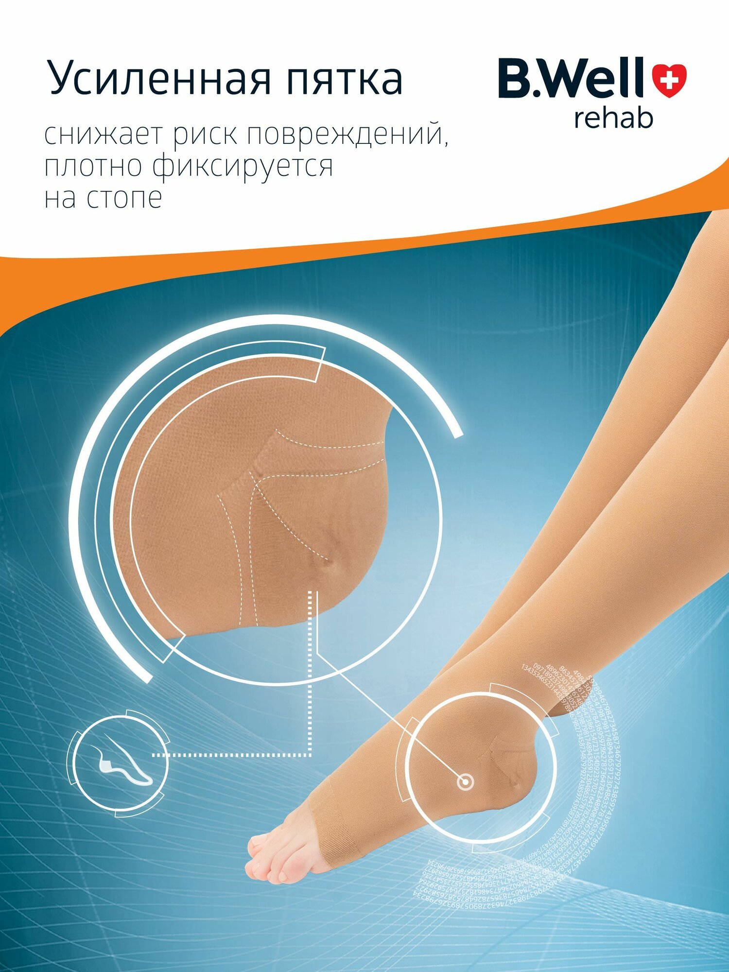 Чулки B.Well rehab JW-227 круглая вязка, противоварикозные, 2 класс, размер: 3, бежевый