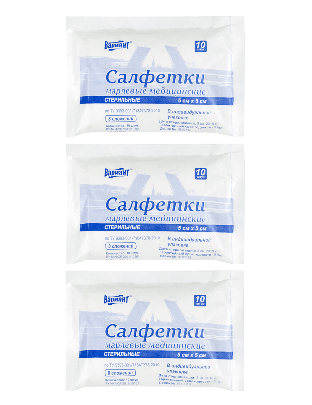Салфетки марлевые Вариант медицинские стерильные двухслойные 45 см х 29 см, №5, 3 упаковки в наборе