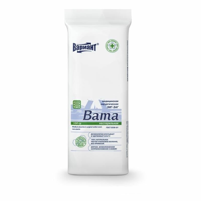Вата хирургическая Вариант Зиг-Заг, 100 г, нестерильная, гигроскопическая интересное: