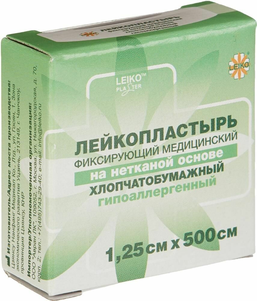 Пластырь (катушка) 1.25х500см Leiko (основа нетканая) (карт уп-ка) (гипоаллергенно)