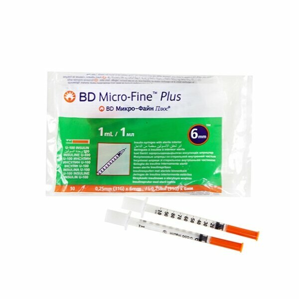 Инсулиновый шприц 1 мл с интегрированной иглой U100 BD Micro-Fine Plus 31G 0,25 x 6 мм, Becton Dickinson, 100 штук интересное: