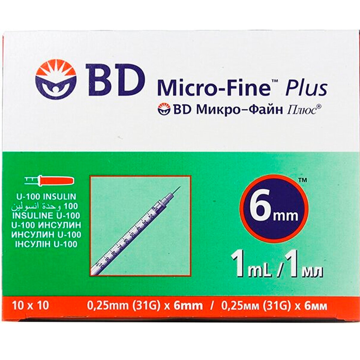 Шприц инсулиновый BD Micro-Fine Plus 1мл/U-100 31G (0,25 мм х 6 мм) 10 шт