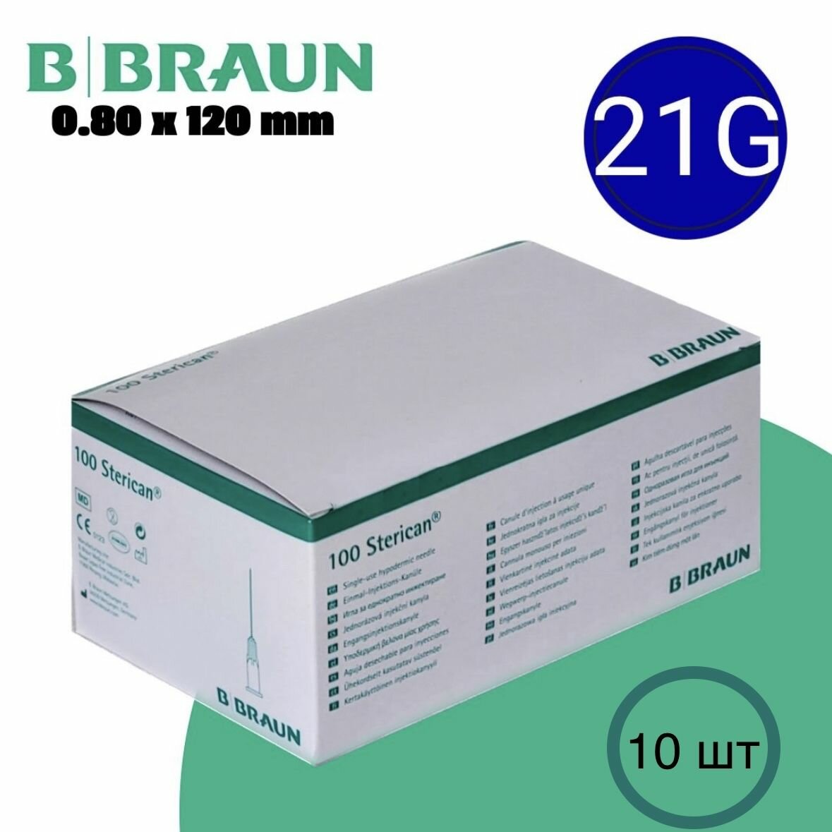 Игла инъекционная B. Braun Sterican, 120 мм x 0.8 мм, размер: 21G, 10 шт.