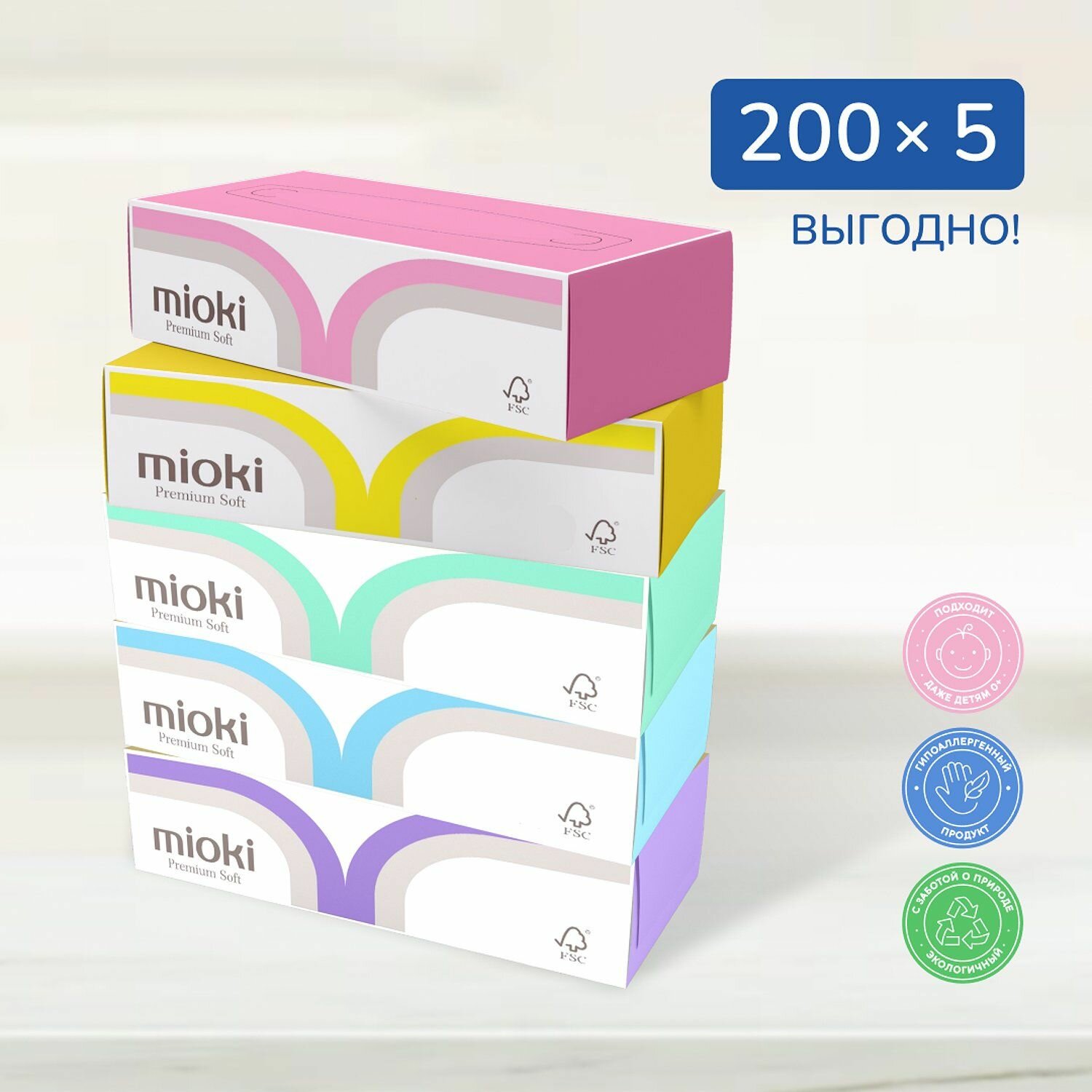 Салфетки MARABU "Волна", 2 слоя, 200шт./уп., без запаха, 5уп./кор. интересное: