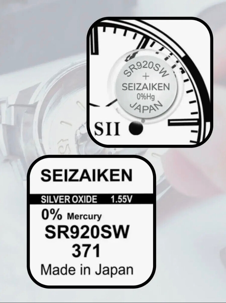 Батарейка для часов Seiko Seizaiken 371 SR920SW Silver Oxide 1.55V, в блистере 1 шт.