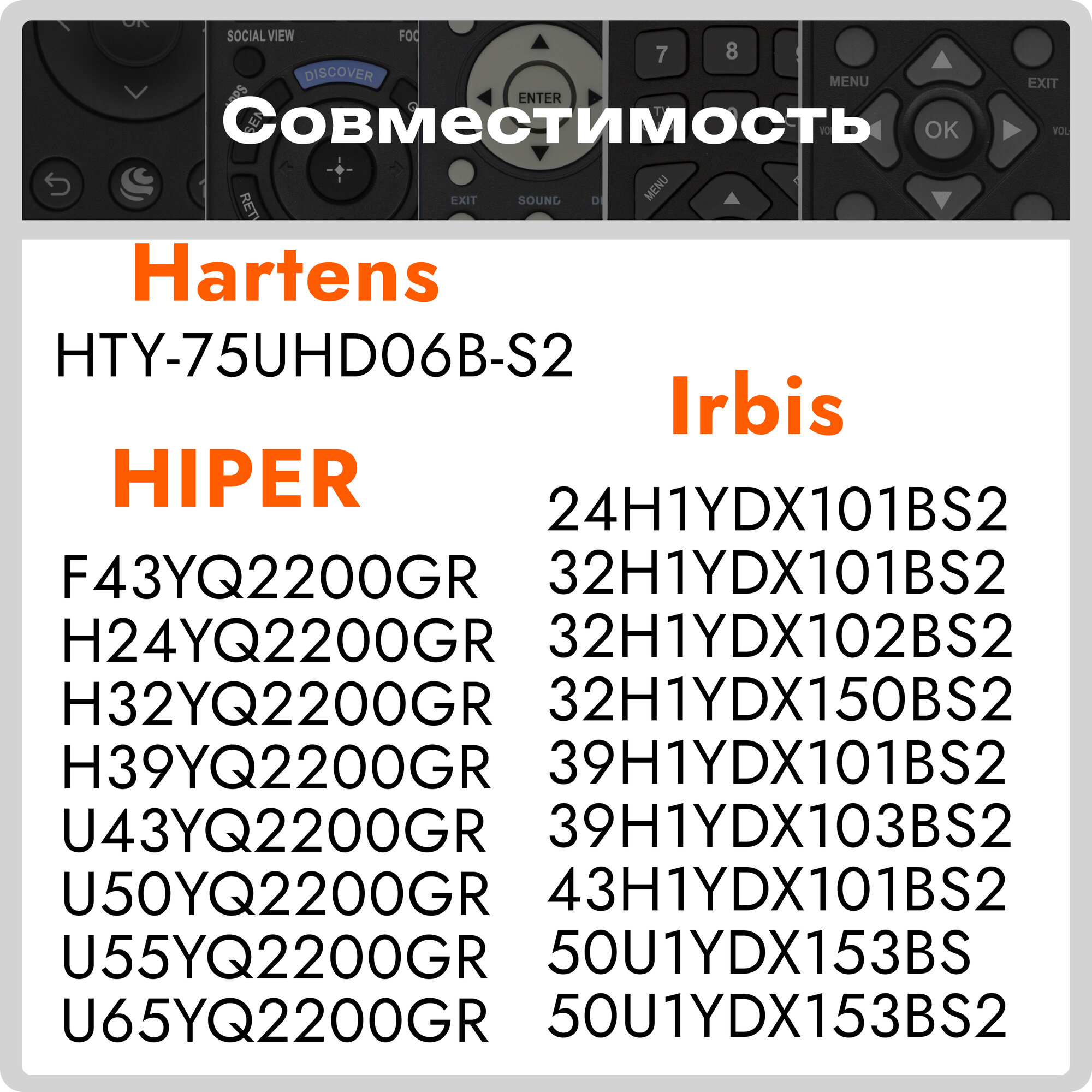 | Производитель совместимых устройств | BBK / DEXP / HARTENS / HIPER / Irbis / Leff / VEKTA / Yuno |