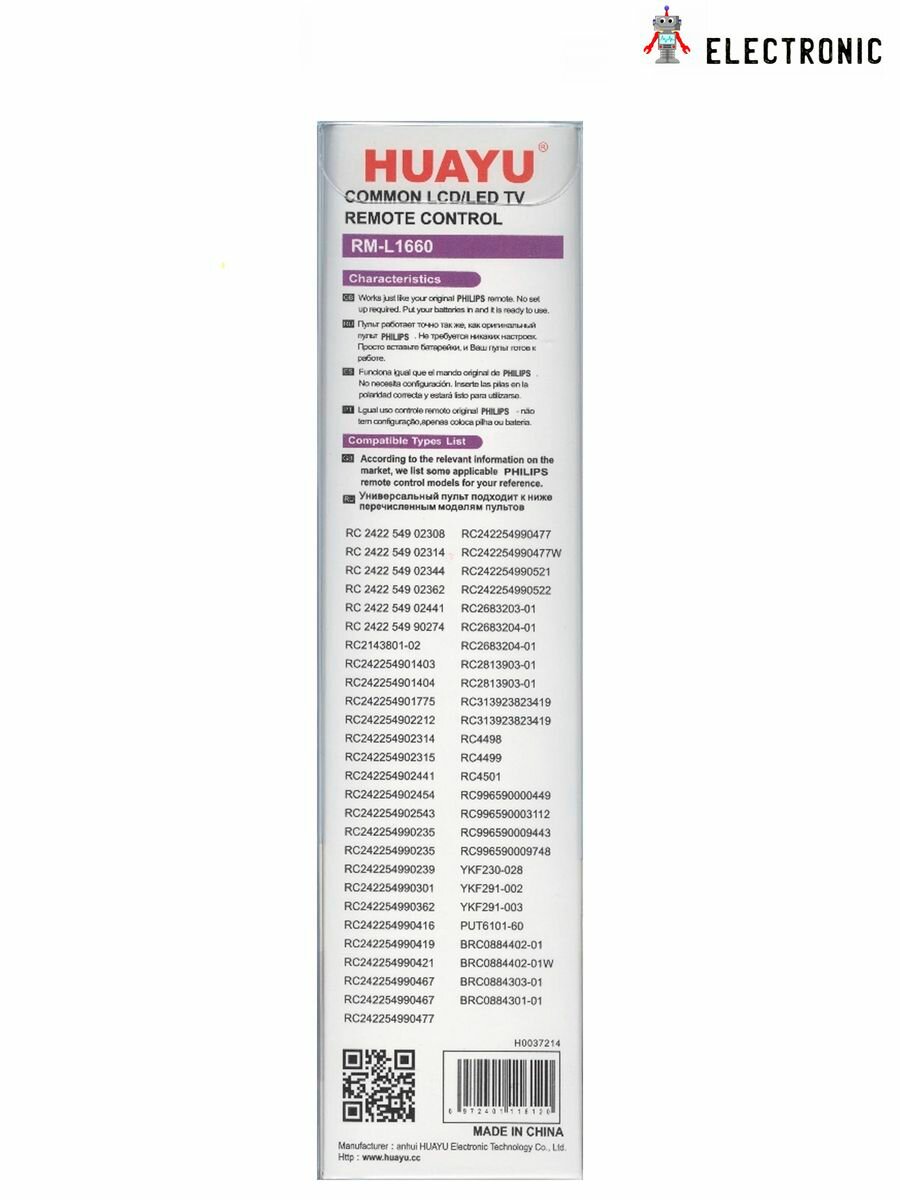 Универсальный пульт Huayu для PHILIPS RM-L1760