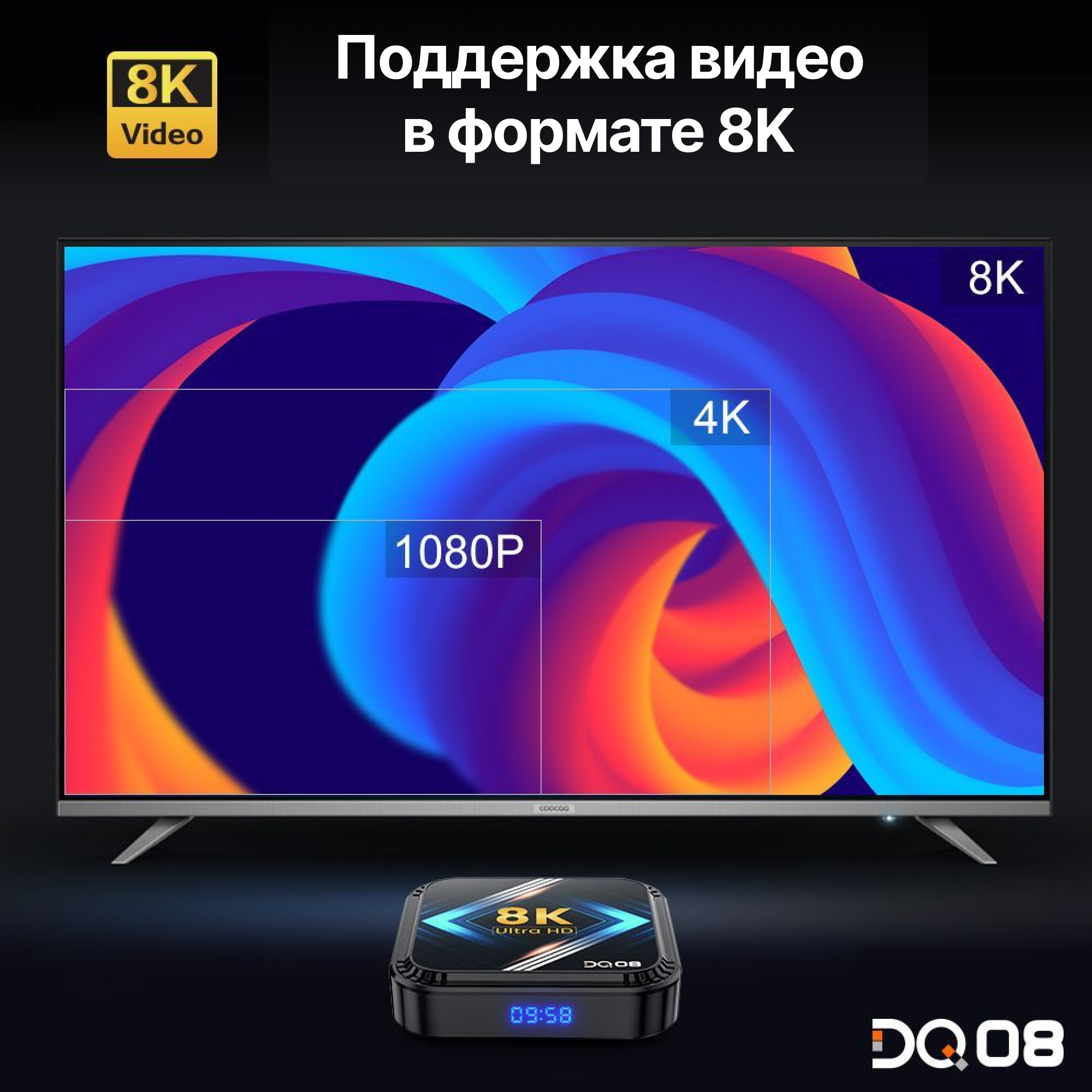 Смарт ТВ приставка / Android 13 / Поддержка 8K / BT4.0 / WiFi / 32ГБ