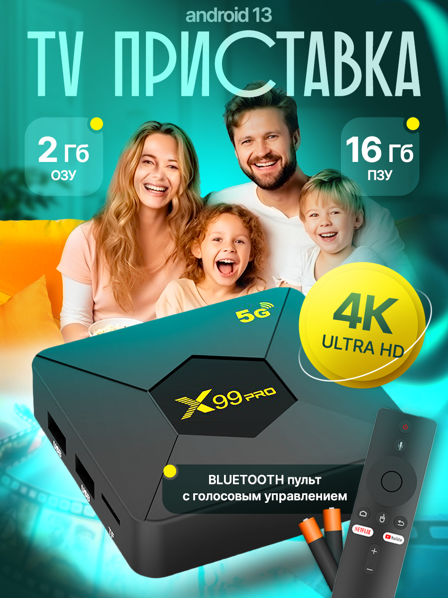 Тв приставка с Android 13, поддержкой 4k, BT5, Wi-Fi и 16 Гб памяти интересное: