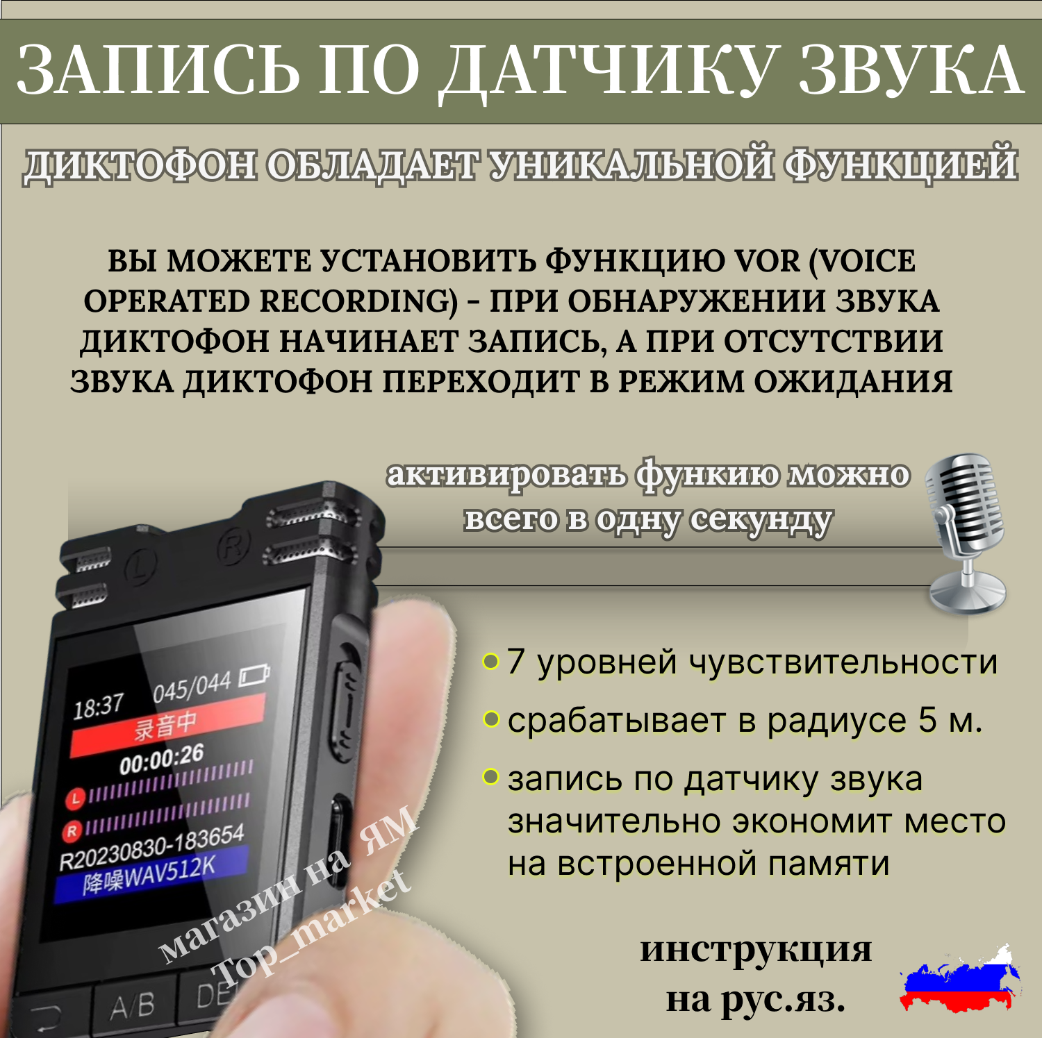 Диктофон Spec 077D с дисплеем/ AGC, запись по датчику звука/запись во время зарядки, MP3-плеер/ автосохранение интересное:
