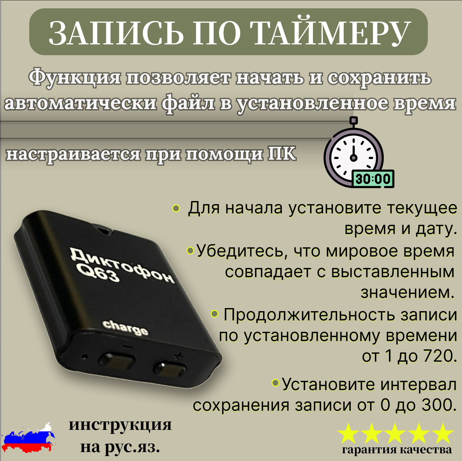 Миниатюрный диктофон SPEC Q63/ встроенная память 8 GB/ запись во время зарядки/ датчик звука/ 30 часов записи интересное: