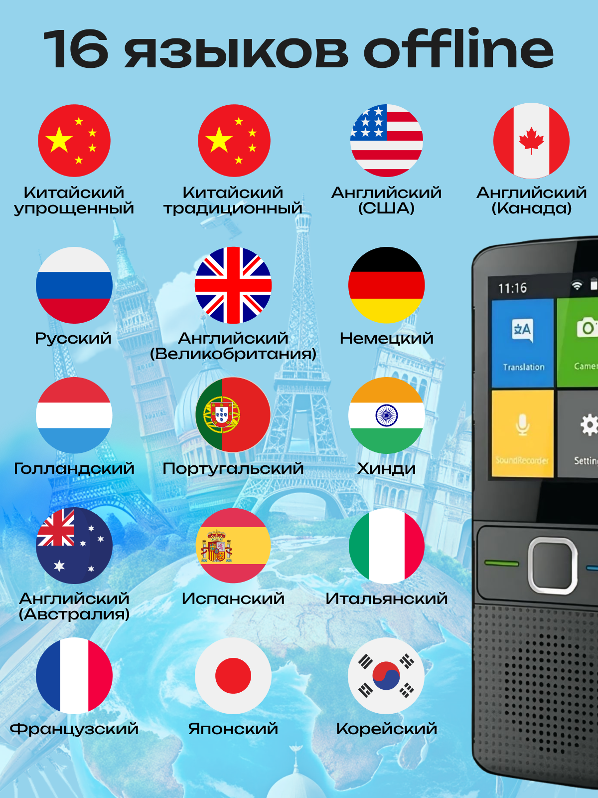 Голосовой переводчик Т10 многоязычный, перевод по фото интересное: