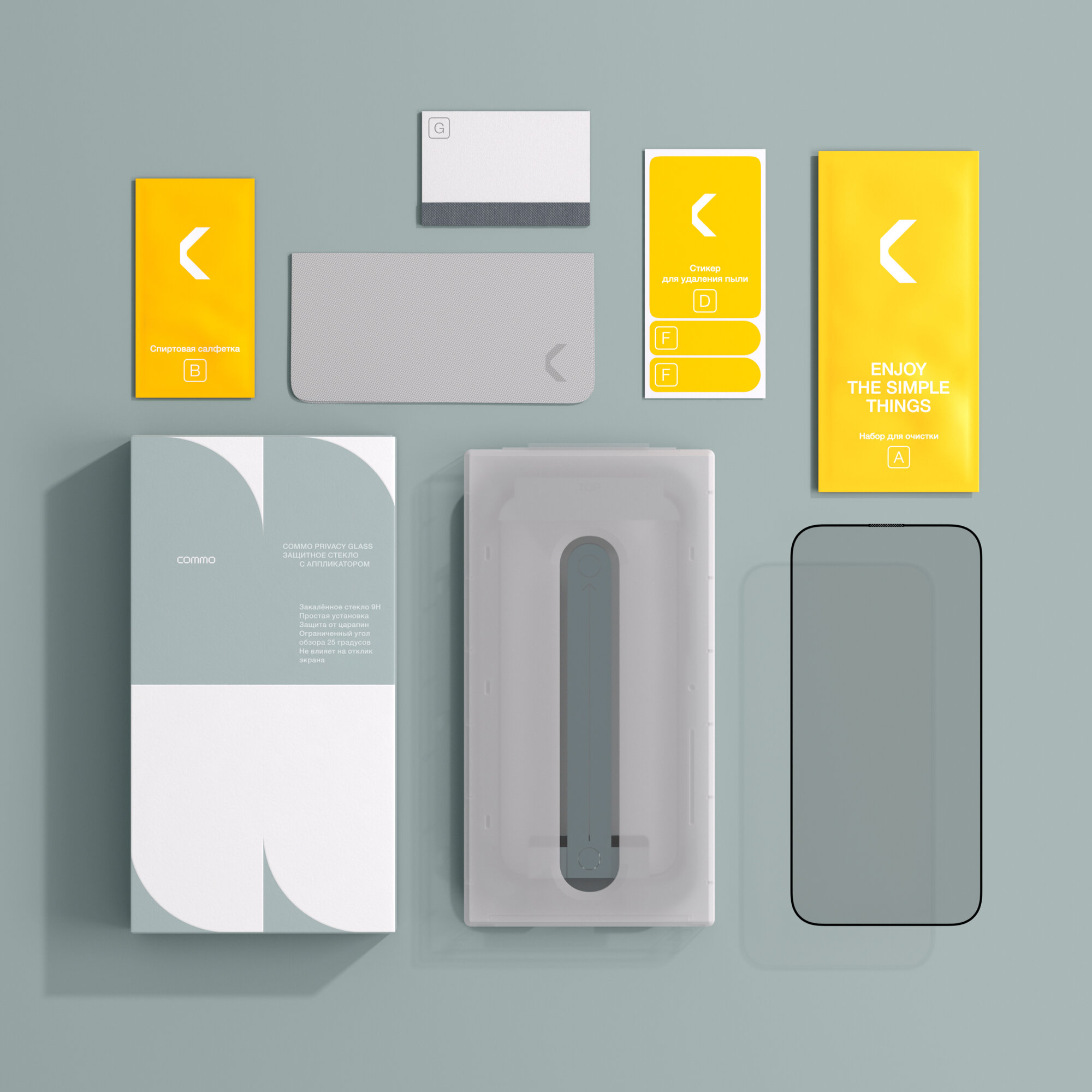 Защитное стекло с аппликатором СOMMO Privacy Glass (2 шт в комплекте) для iPhone 14 Pro