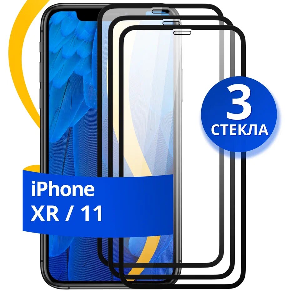 Комплект из 3 шт. Глянцевое защитное стекло для телефона Apple iPhone XR и 11 / Противоударное стекло с олеофобным покрытием на Эпл Айфон ХР и 11