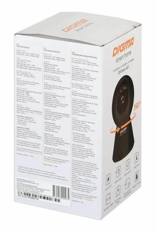 | Отзыв: | До этого была одна Digma 301, докупил 401-ю модель для охвата еще двух комнат. Отличный выбор для простого наблюдения за тем, что происходит в помещении. Качества зеркалки от этих камер ждать не нужно, это не фотоаппарат, тут другие цели. За свою цену камеры Digma считаю достойными, большего вообще не требуется. |