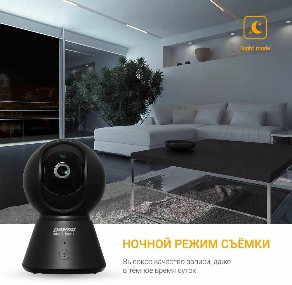 | Отзыв: | Наворочоннее камера, чем предыдущие модели. Из-за того, что она поворотная, мой выбор пал именно на нее. Камера работает от wi-fi и от приложения Digma SmartLife, простое и доступное. |