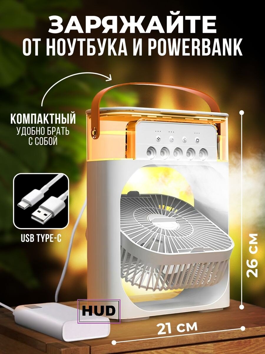 Вентилятор настольный мини кондиционер с увлажнителем портативный type c белый