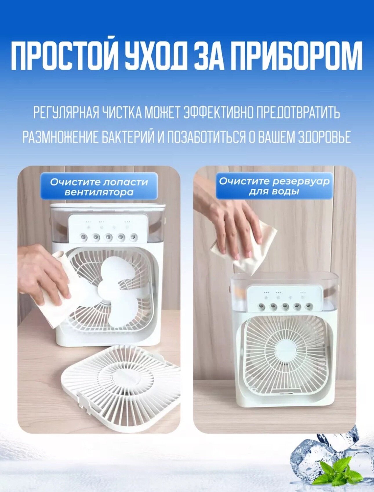 Мини кондиционер, вентилятор настольный с увлажнителем, белый интересное: