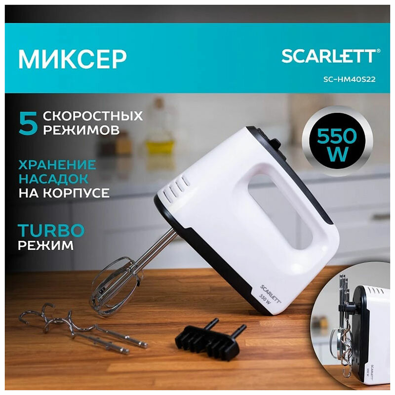 Миксер SCARLETT SC-HM40S22 белый интересное: