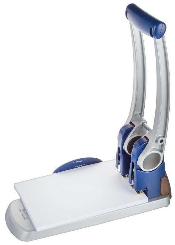 Дырокол металлический супермощный KW-trio, до 300 листов, серебристый с синими вставками, 9550