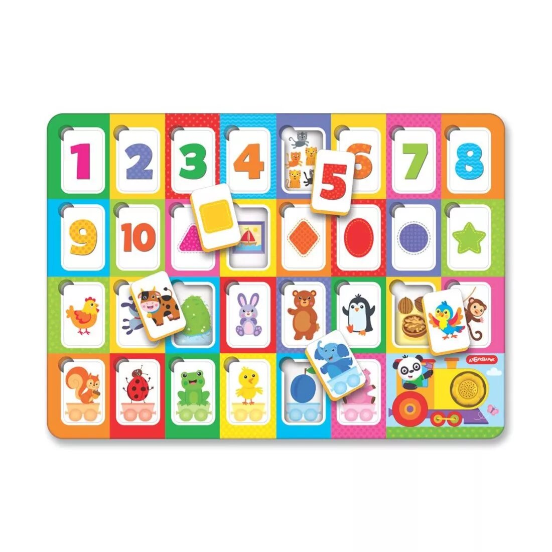 | Особенности | с геометрическими фигурами / с цифрами / со звуковыми эффектами |