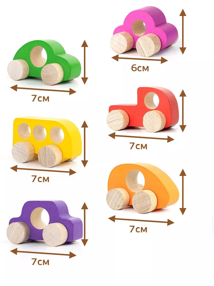 | Комплектация | 5 деревянных машинок каталок |