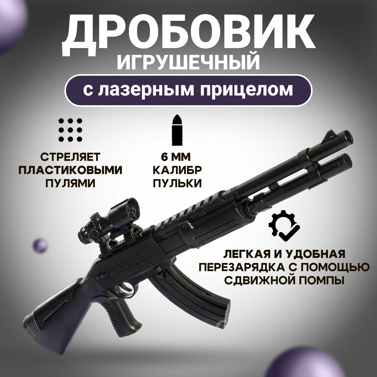 Купить Автомат игрушечный, Пневматический автомат, Дробовик, Цвет - Черный