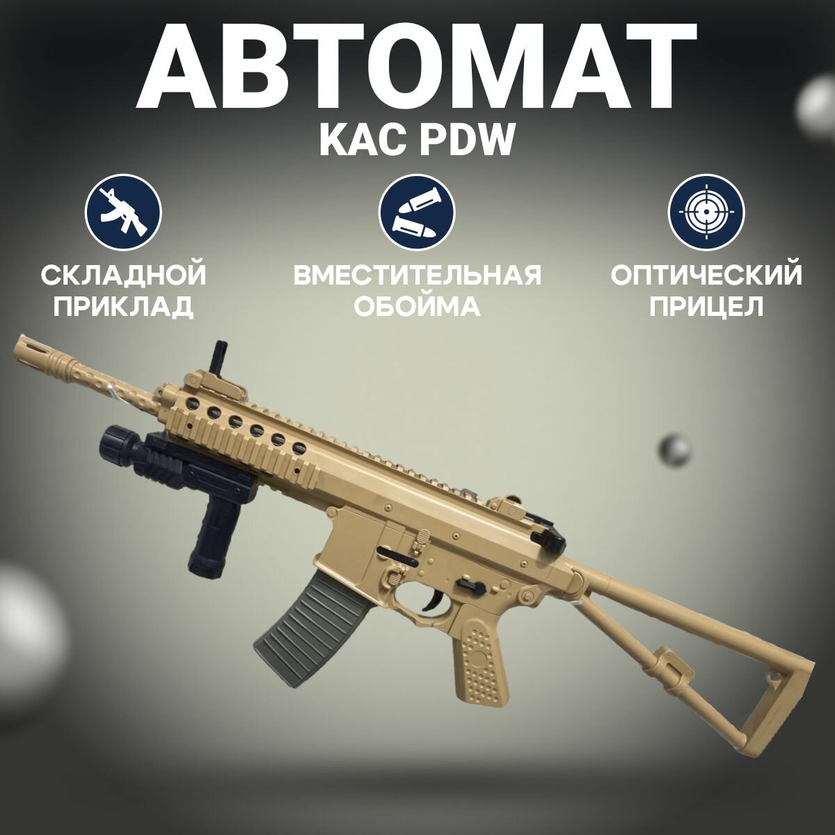 СохранитьАвтомат игрушечный, Пневматический автомат, Игрушечное оружие, KAC PDW 70см, Цвет - Бежевый интересное: